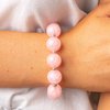 Infused with dainty silver accents, an oversized collection of crackly gray glass-like beads are threaded along stretchy bands around the wrist for an icy look.