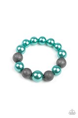 Dusted in glitter, sparkling gunmetal and shiny black beads are threaded along a stretchy band around the wrist for a glamorous look. Also available in Green and Blue