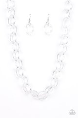 Glassy purple links connect below the collar, creating a colorfully, modern chain. Features an adjustable clasp closure. Also available in White