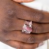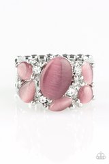 Glittery white rhinestones and glowing red moonstones are sprinkled across the finger, coalescing into a whimsical band. Features a stretchy band for a flexible fit. also available in Blue and Purple
