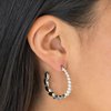 Gradually increasing in size, classic round rhinestones fade into smoky and hematite marquise cut rhinestones for a refined look. Earring attaches to a standard post fitting. Hoop measures 1" in diameter.