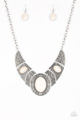 Radiating with studded and tribal inspired patterns, antiqued silver plates connect below the collar for a fierce look. Fiery blue stones are pressed into the plates, adding an artisan flair to the dramatic centerpiece.
