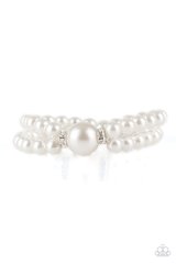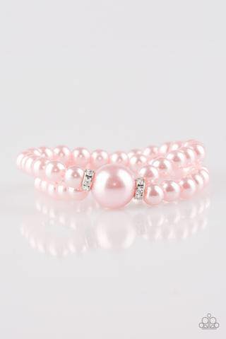 Joined at the center by an oversized black bead and a pair of white rhinestone encrusted rings, shiny black beads are threaded along stretchy bands around the wrist for a timelessly layered look. Also available in Black and Pink