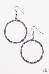 Dainty purple beads are encrusted along a shimmery silver hoop for a perfect pop of seasonal color. Earring attaches to a standard fishhook fitting. Also available in Multi and Yellow