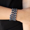 Bubbly pink pearls and classic white rhinestone encrusted silver frames are threaded along a coiled wire, creating a timeless infinity wrap-style bracelet. Also available in blue and white