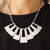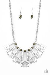 Infused with dainty turquoise stone beads, hammered silver rectangular frames fan about below the collar for a bold seasonal look. Features an adjustable clasp closure. Also available in green