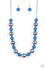Polished purple beads and dramatic silver beads drape below the collar for a perfect pop of color. Features an adjustable clasp closure. Available in blue and pink