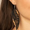 A mismatched collection of cork and brown leather feather frames flutter from the ear, layering into a free-spirited lure. Earring attaches to a standard fishhook fitting. Also available in Black
